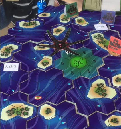 A story-driven boardgame where you play against each other, trying to curry favor with your father the Pirate King. Game features unique map generation, ever changing story and player vs player combat.